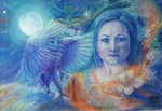 2018Geinspireerd door een eigen foto gemaakt van een jonge vrouw. Een maan, een uil, en een collage van wit en maan-achtige bloemen gebruikt als uitgangs punt. Een betekenis is er niet, maar zoekend voor symbolisch betekenis - vond ik het verhaal van Blodeuwedd 'bloem -gezicht' van Welsh Mythologie en ontdekte elementen die ik in mijn tekenen zie.